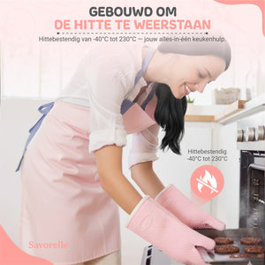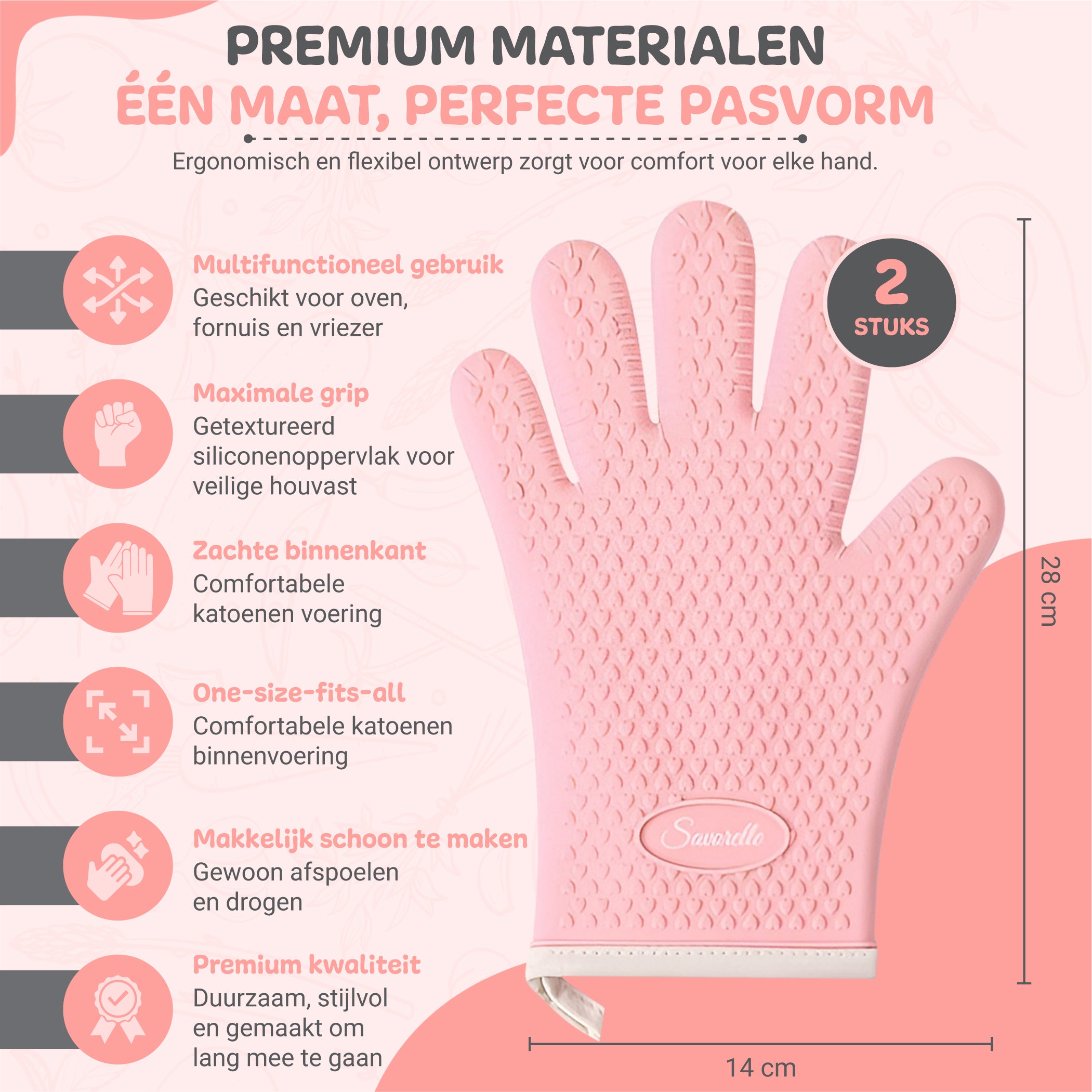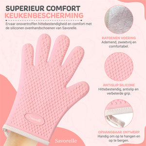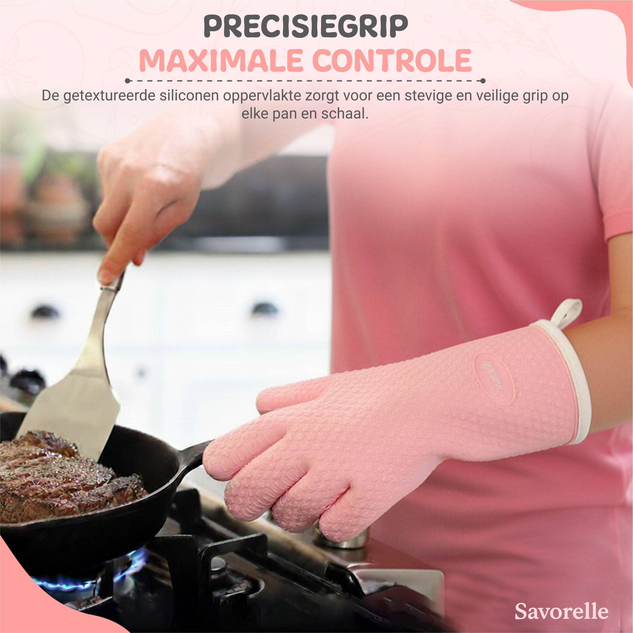 Met de Savorelle siliconen ovenhandschoenen til je koken en bakken naar een hoger niveau van veiligheid en gemak. Een onmisbare accessoire voor iedereen die graag in de keuken staat.